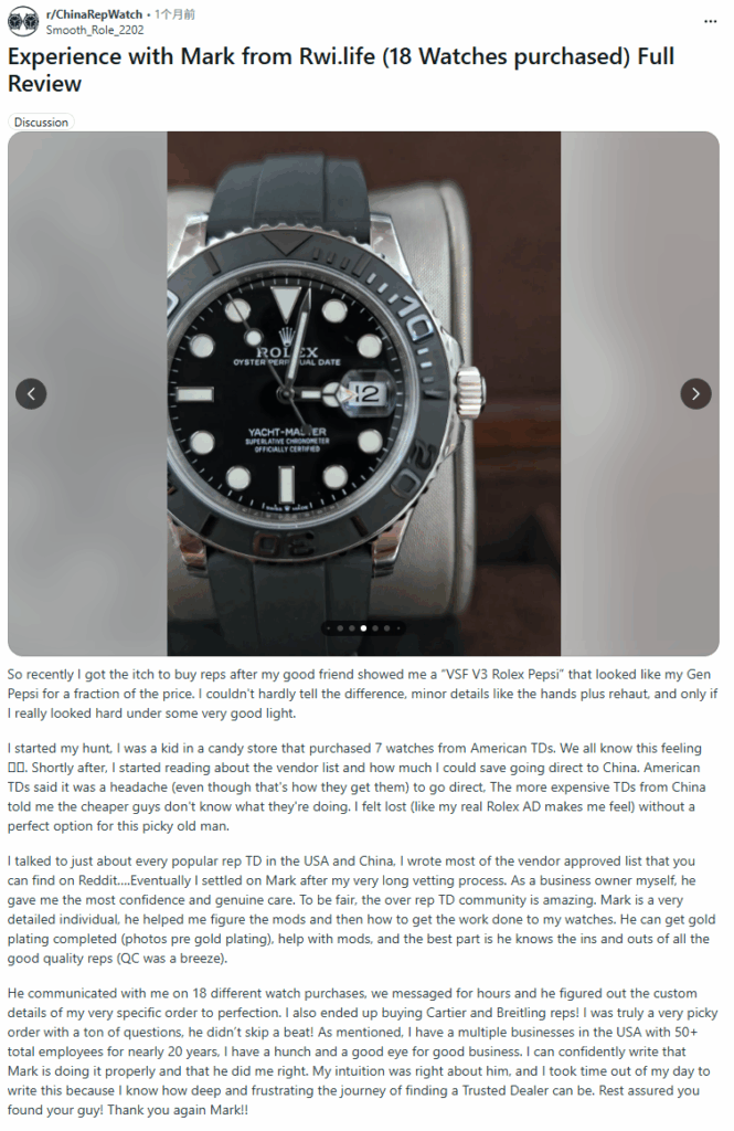 Experience with Mark from Rwi.life (18 Watches purchased) Full Review byu/Smooth_Role_2202 inChinaRepWatch