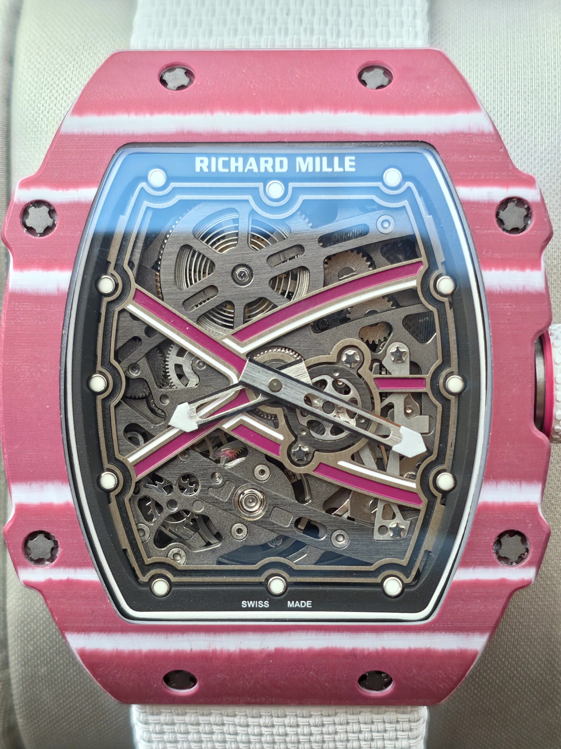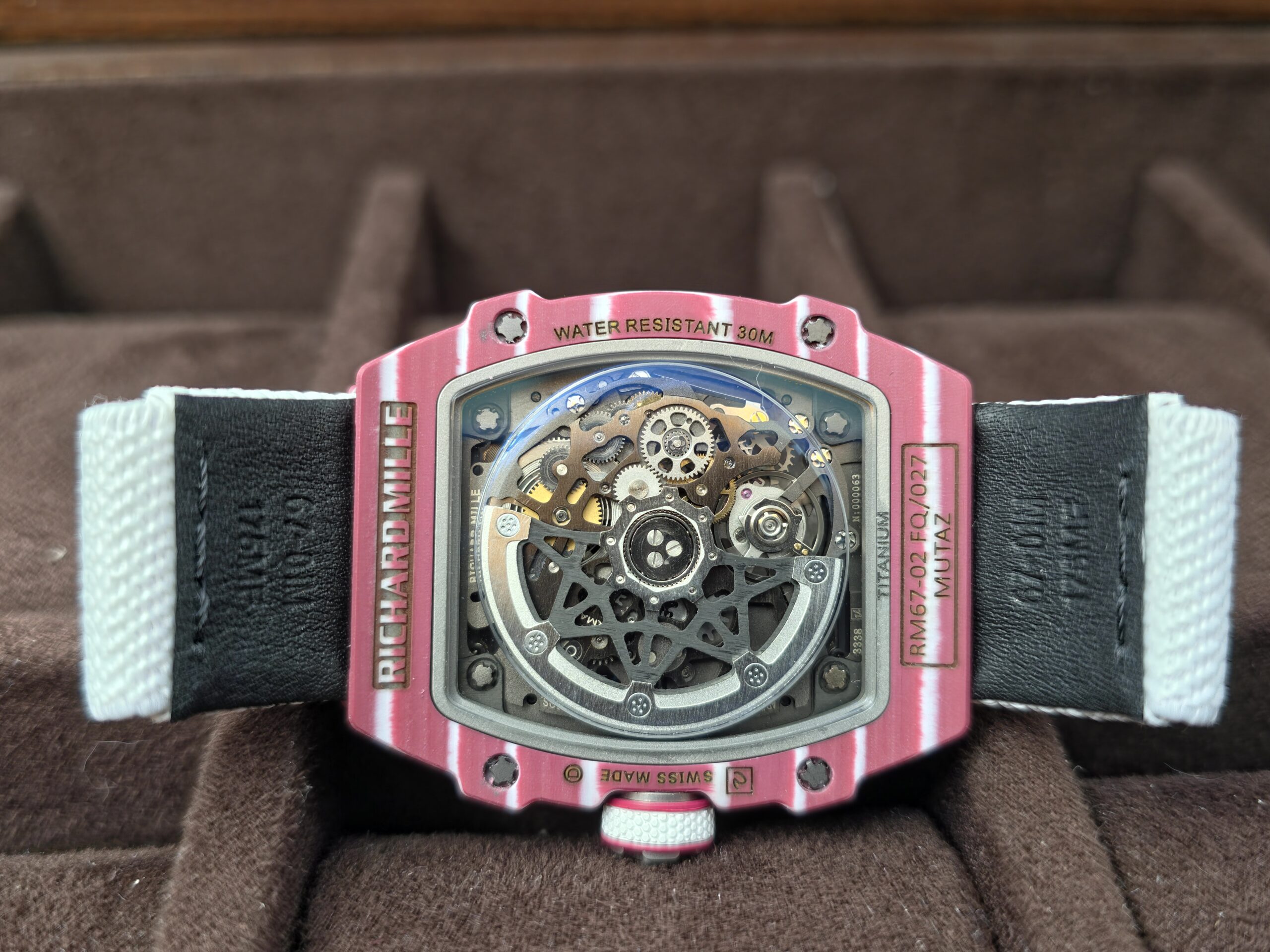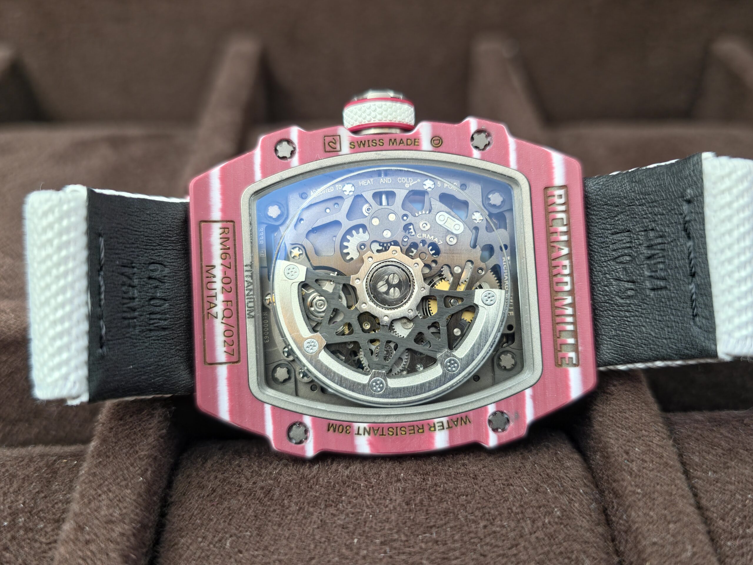 Custom Made RM67-02 Mutaz Essa Red NTPT on White Nylon strap CRMA7 Clone