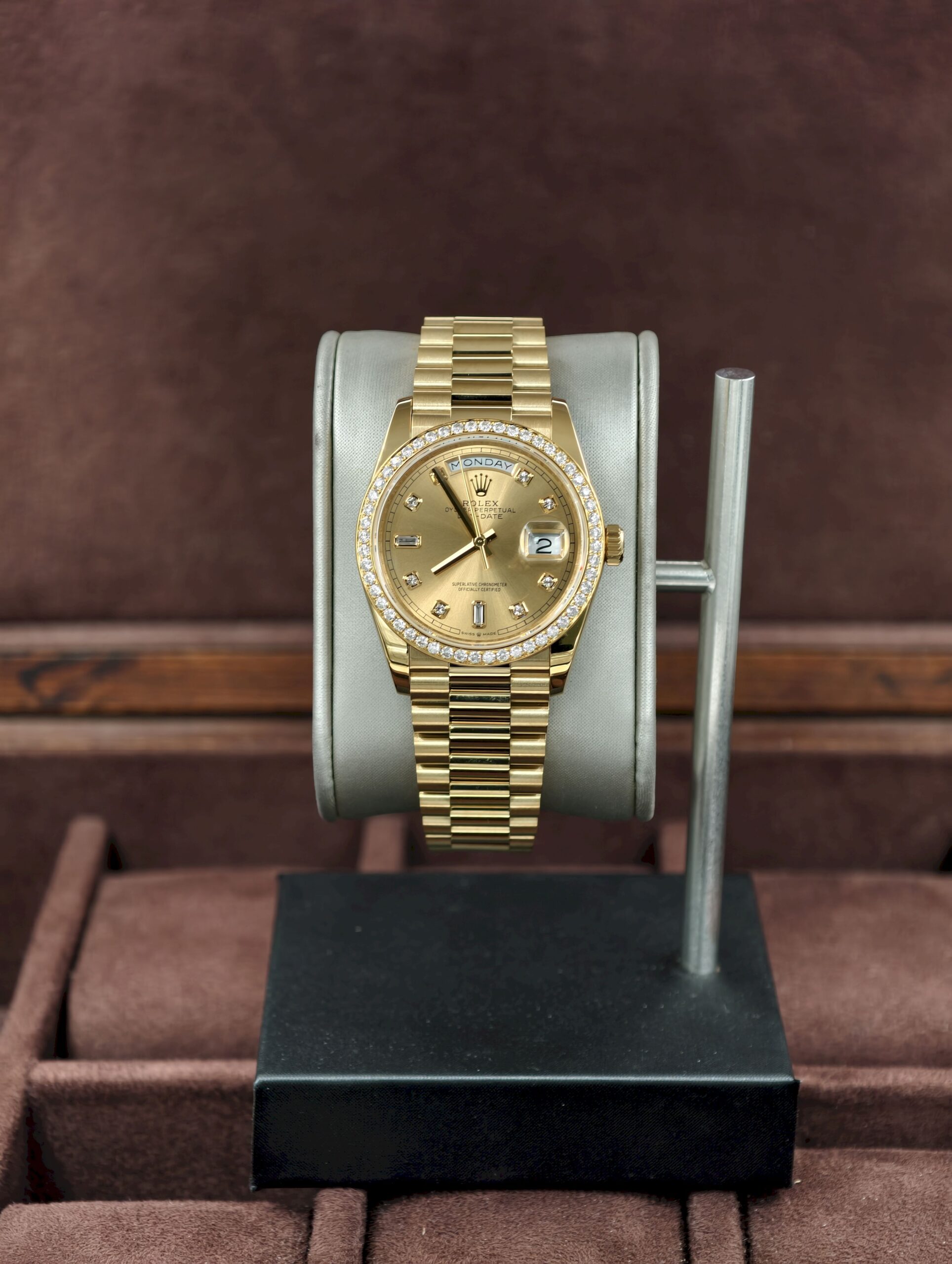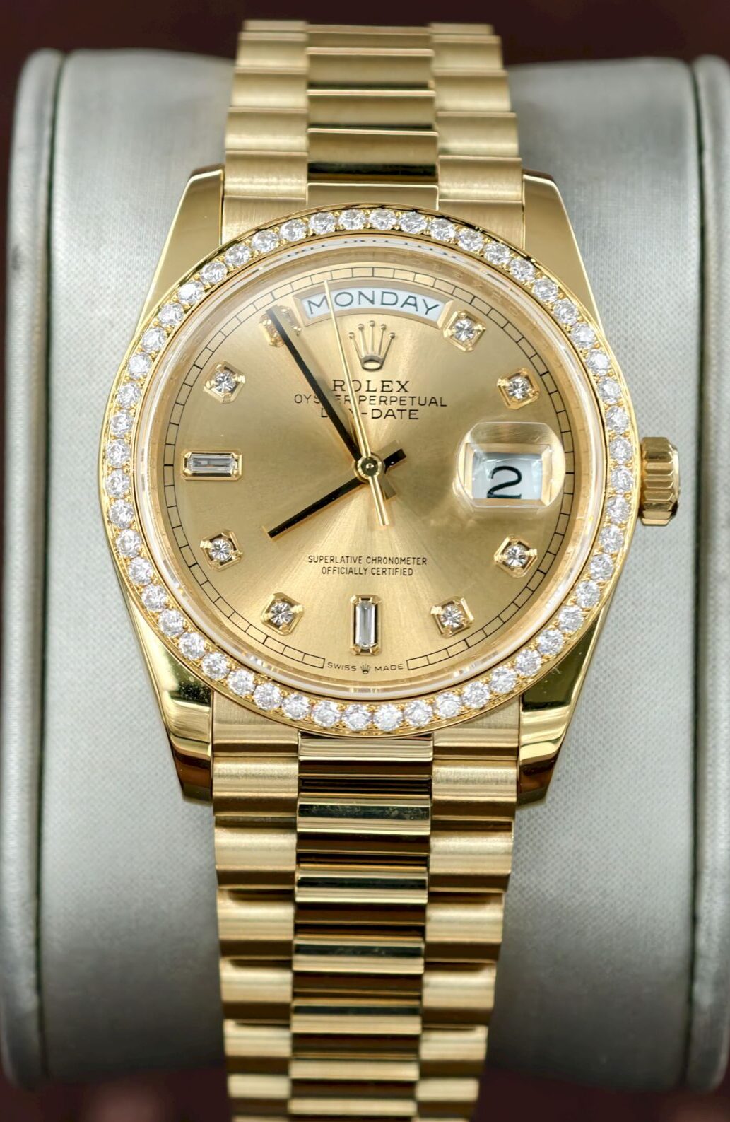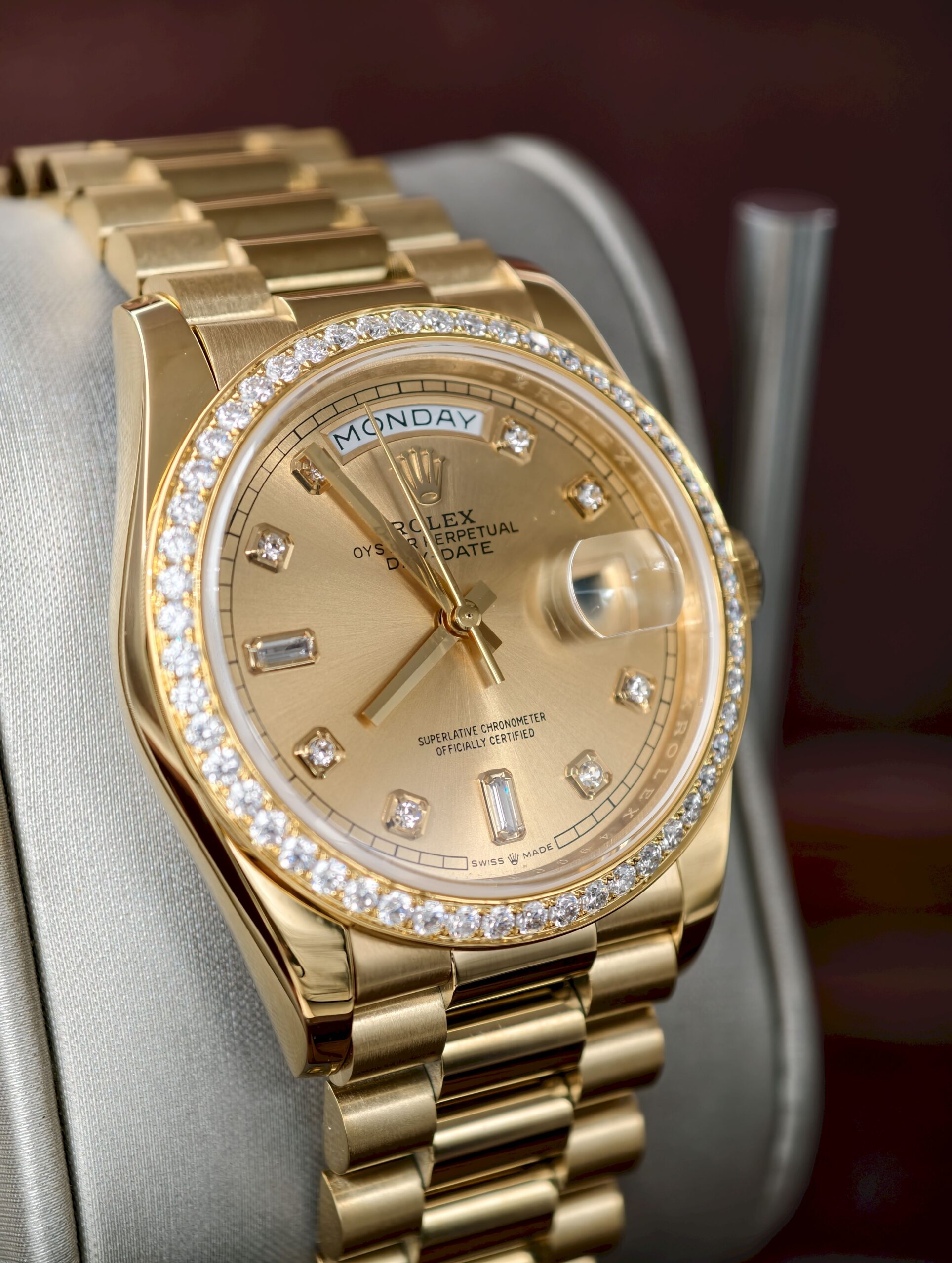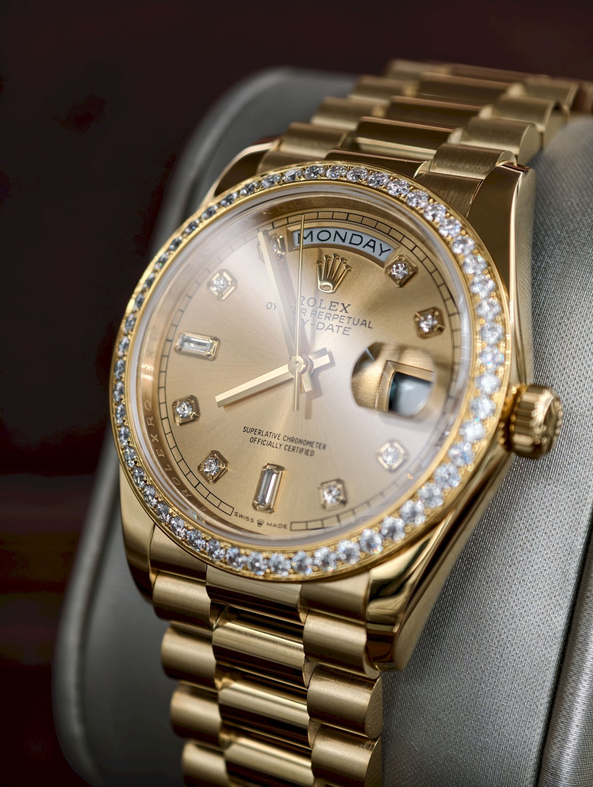 Daydate 36mm QF MOD VVS moissanite bezel Yellow gold plate